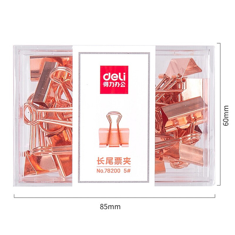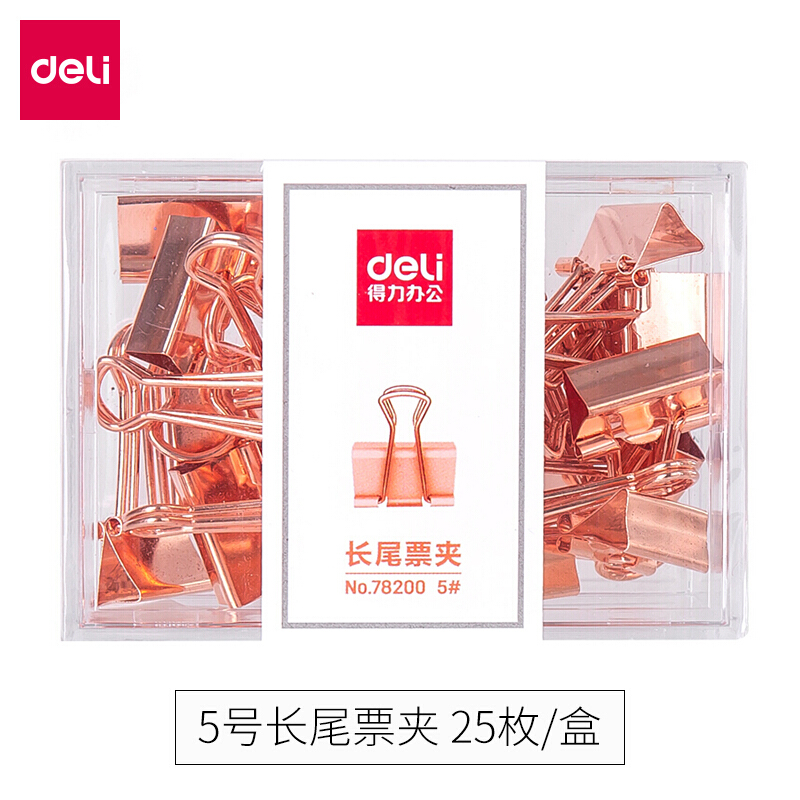 得力78200 长尾票夹5#-25枚 玫瑰金