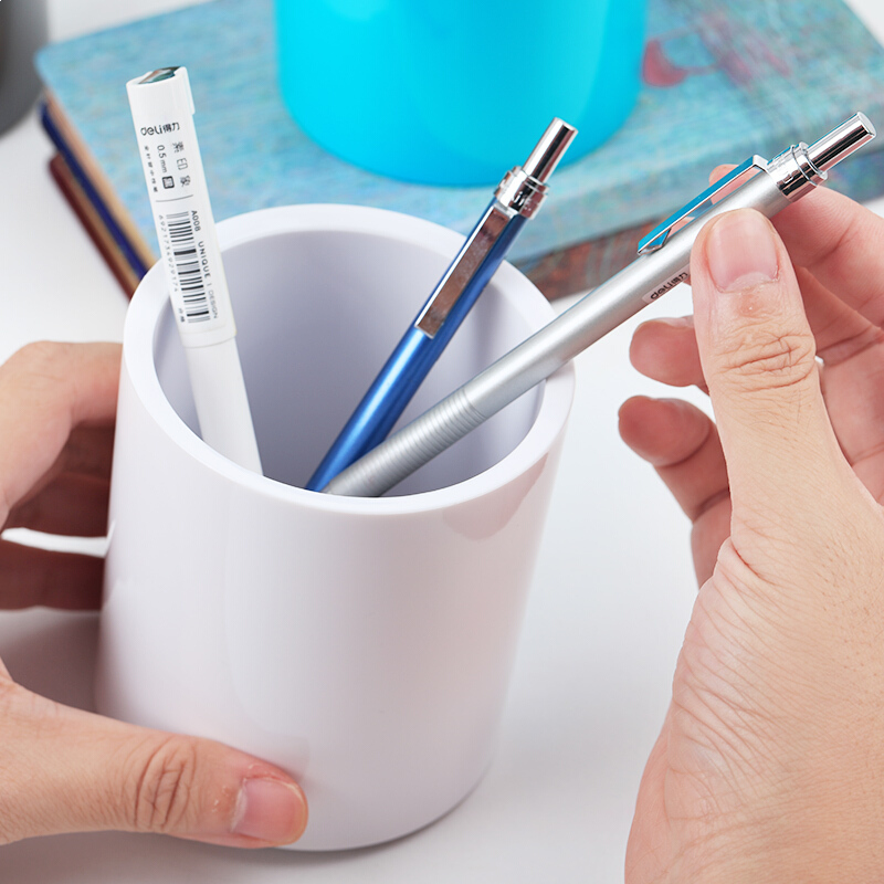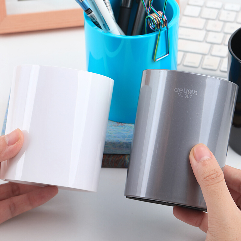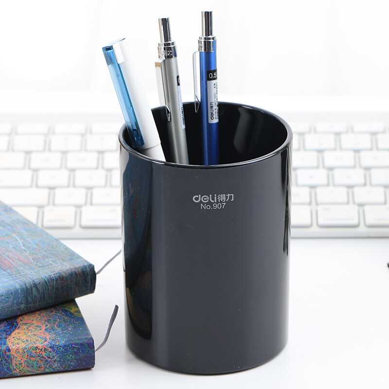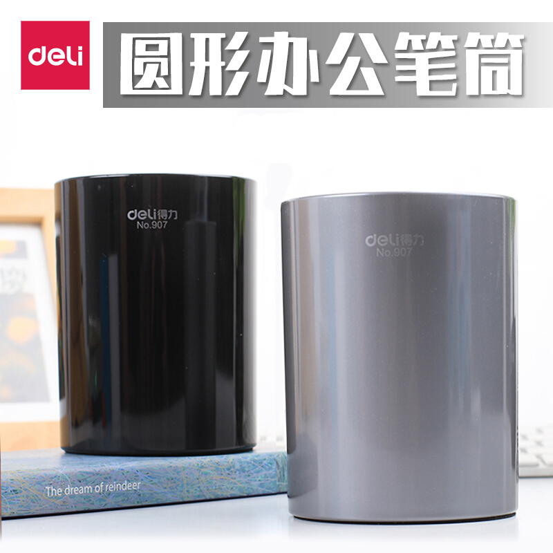 得力笔筒 大容量商务办公笔桶笔插 圆形创意时尚塑料办公笔座办工用品 灰色/907