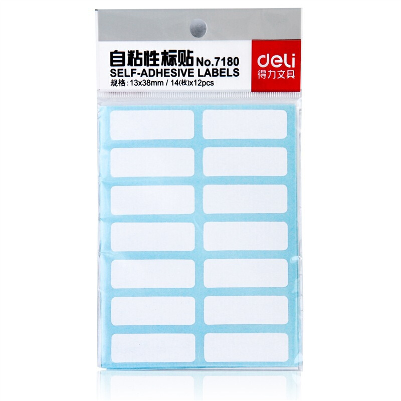 得力7180自粘性标贴 168枚13×38mm不干胶标签贴纸自粘性标贴 14枚/张 12张/包 10包