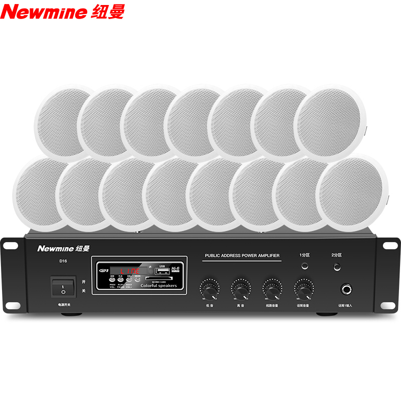 • 纽曼 (Newmine) D165 定压吸顶喇叭功放套装 吊顶背景音乐公共广播音响 音箱功放组合 一拖十五