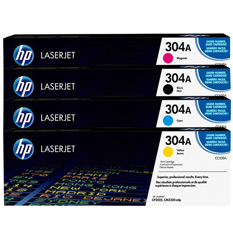 • 惠普(HP)CC530A-533A 黑色彩色套装 304A硒鼓(适用于2025系列、2320系列)