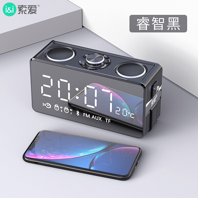 索爱(soaiy)S18 无线蓝牙音箱便携式超重低音炮 户外手机迷你音响 闹钟收音机微信收付款播放器 睿智黑