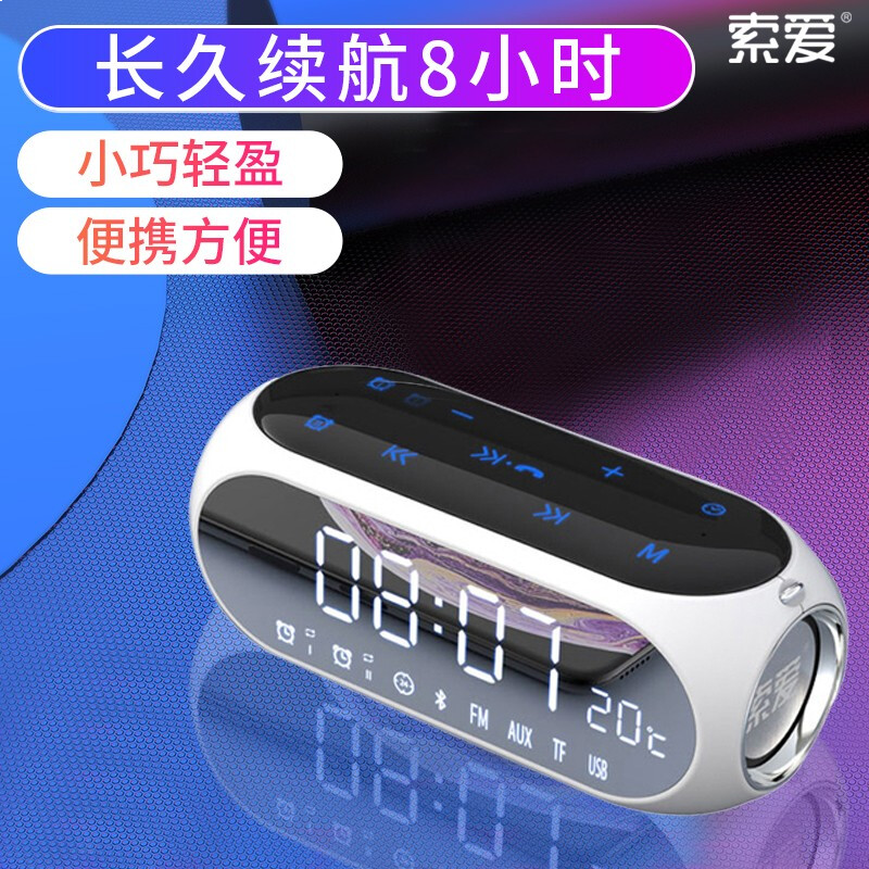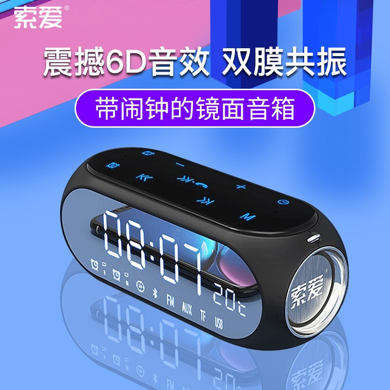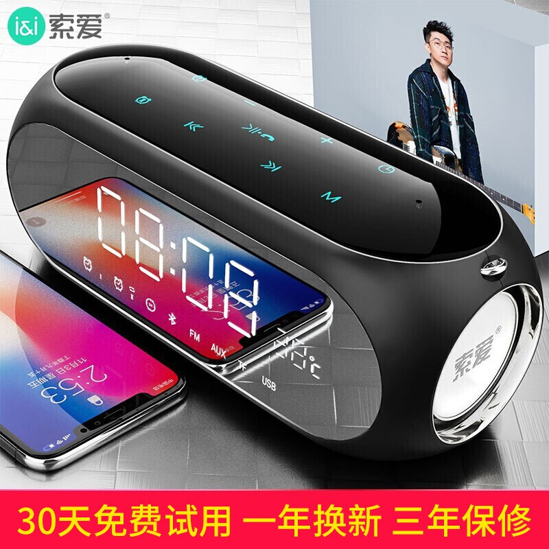 索爱(soaiy) S69无线蓝牙音箱小音响超重低音炮迷你手机台式机电脑户外型小钢炮家用通收音机闹钟 睿智黑