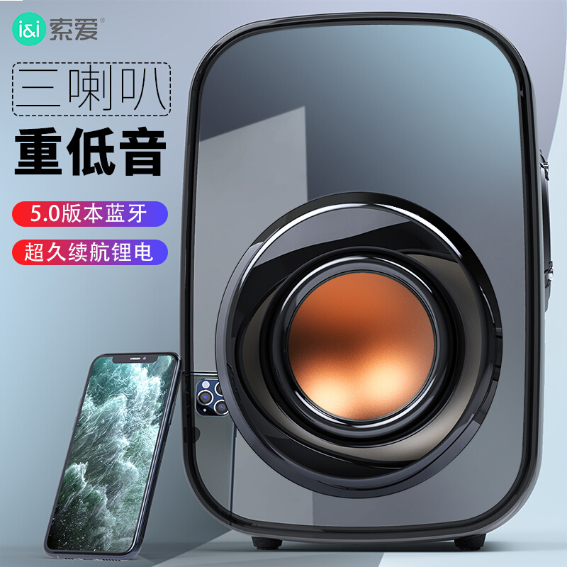 索爱(soaiy)SH25 无线蓝牙音箱 大音量超重低音炮 广场舞户外音响 车载收音机小型便携式收款迷你音响