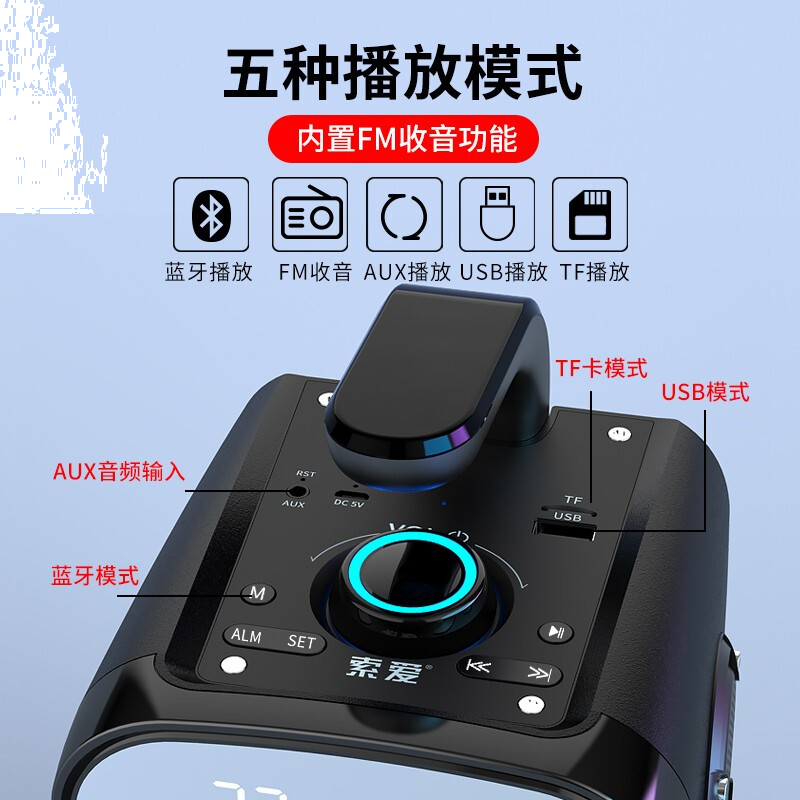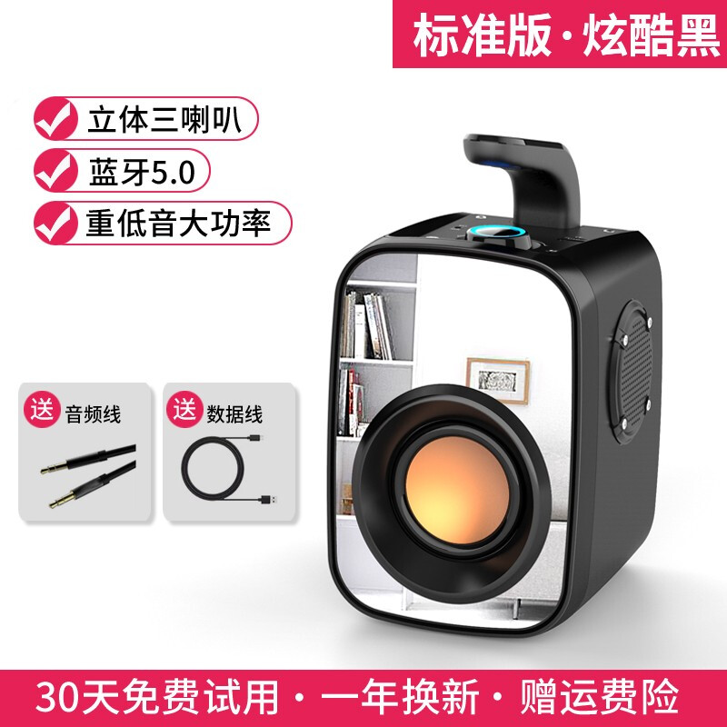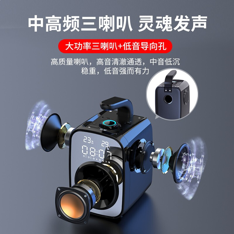 • 索爱(soaiy) SH25无线蓝牙音箱大音量音响超重低音炮便携式广场舞户外车载收音家收款扩音器 标准版炫酷黑【立体三喇叭】