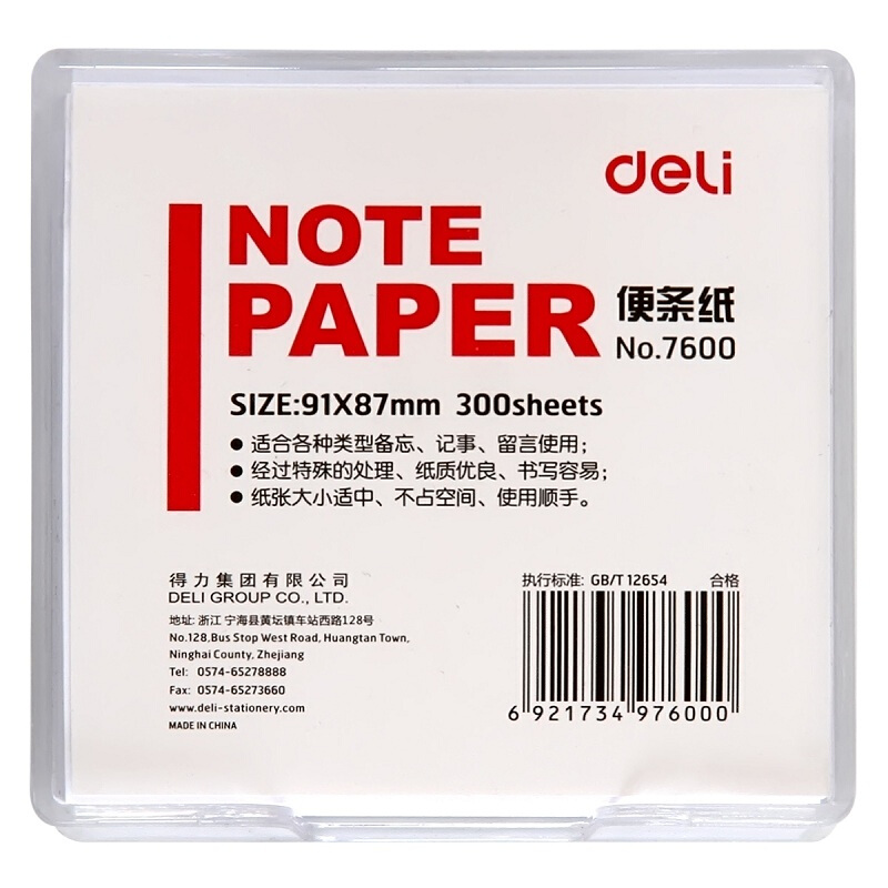 得力91×87mm/300页带盒便签纸便条纸便签本 7600-W