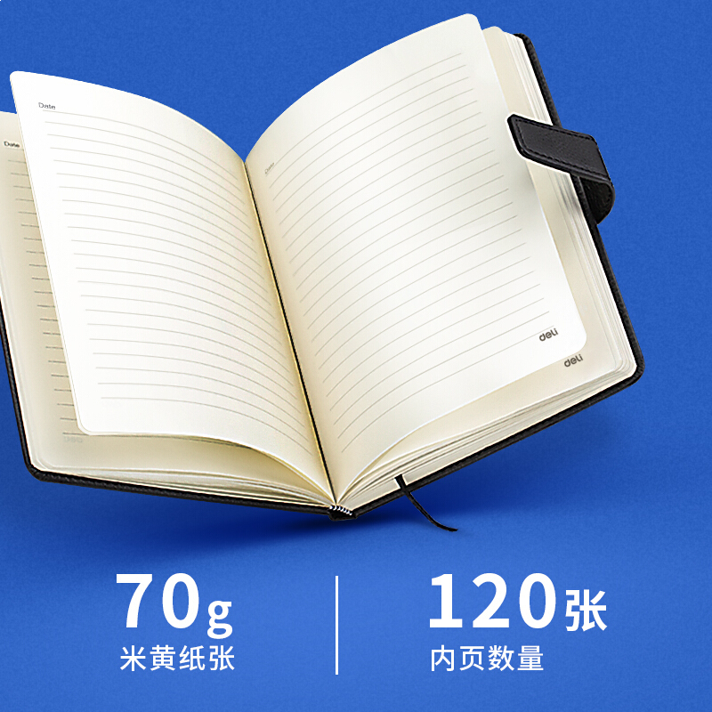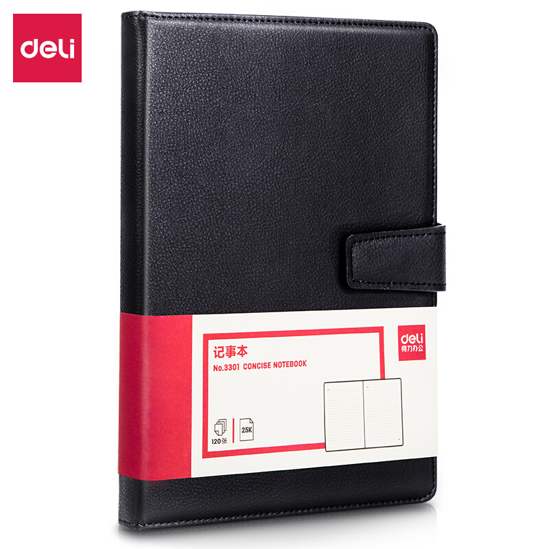 得力25K120张商务磁扣皮面本 工作记事本会议记录本笔记本子文具 黑色3301