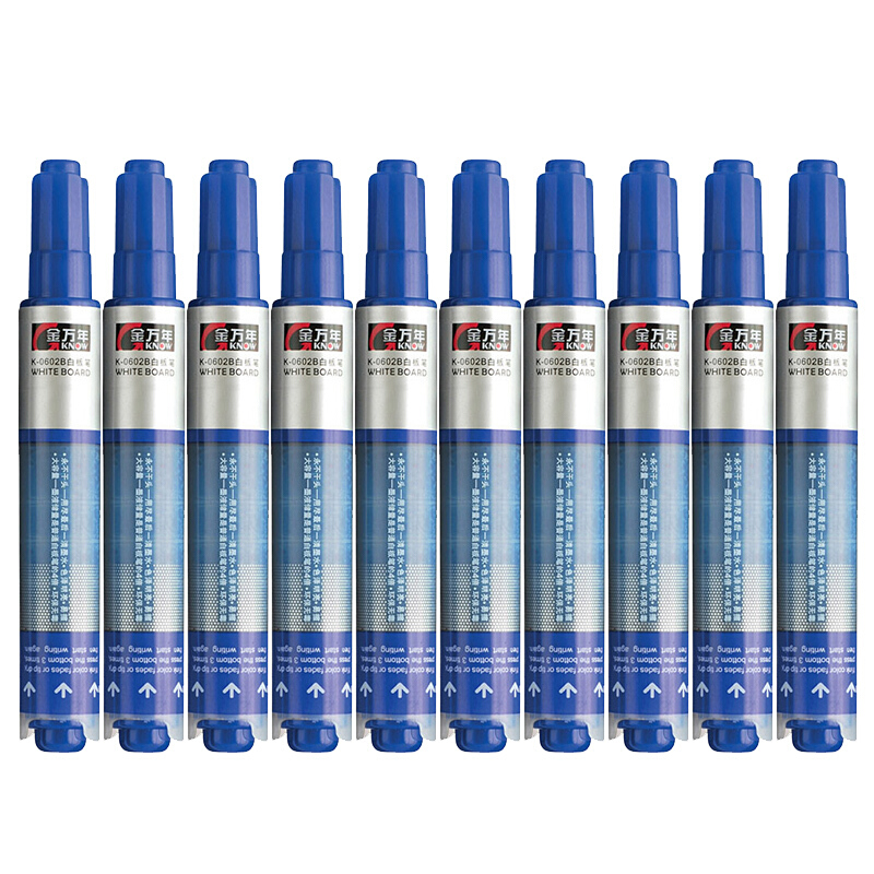 金万年(Genvana) K-0602B直液式白板笔透窗按压式大容量水性可擦白板笔补充液 10支 蓝色按压式
