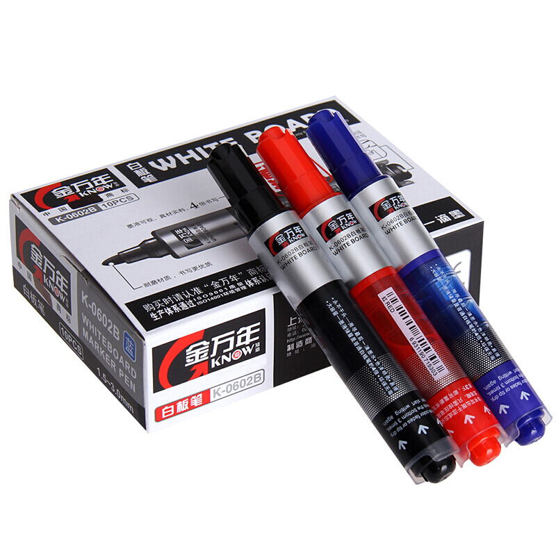 • 金万年(Genvana) K-0602B直液式白板笔透窗按压式大容量水性可擦白板笔补充液 10支 蓝色按压式