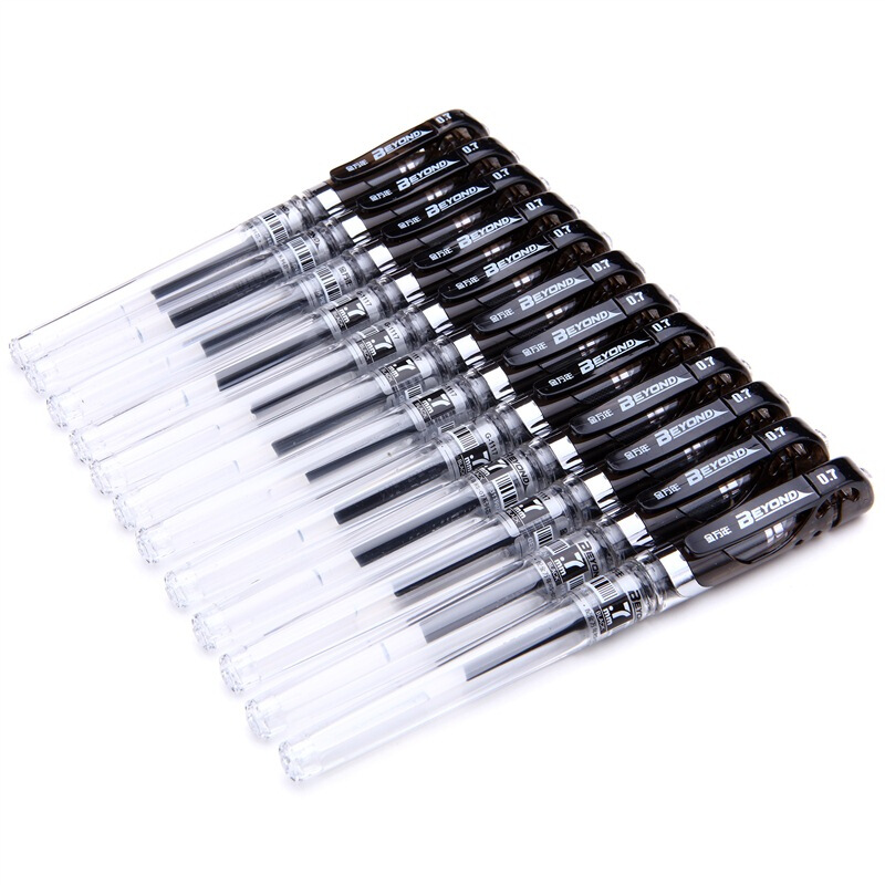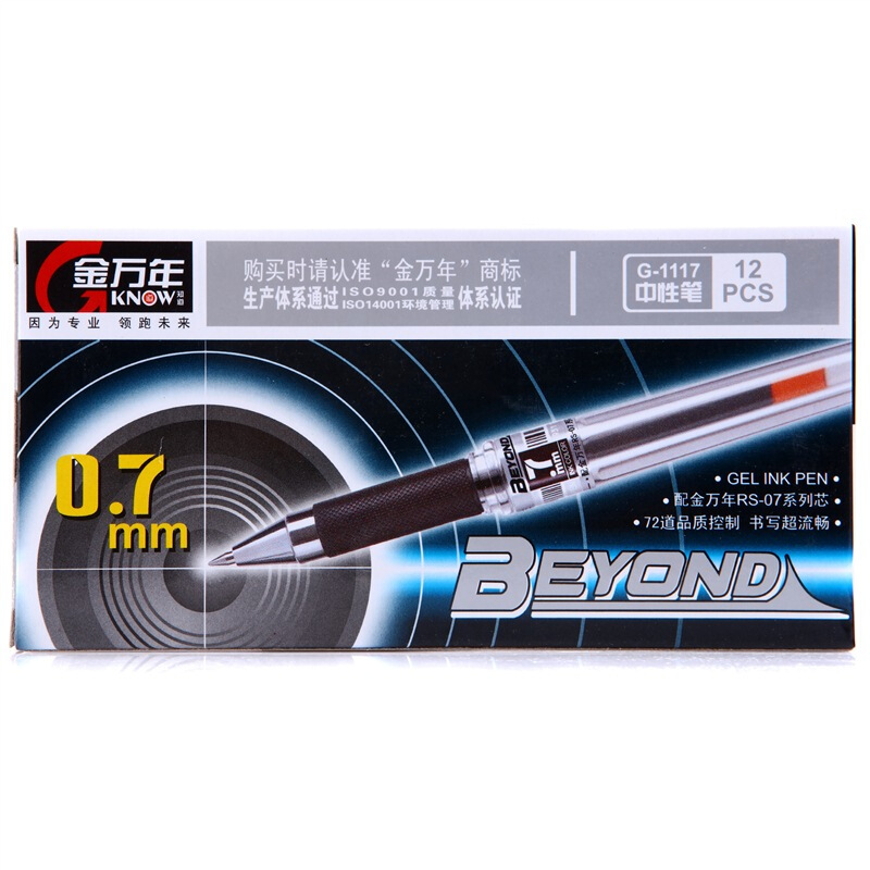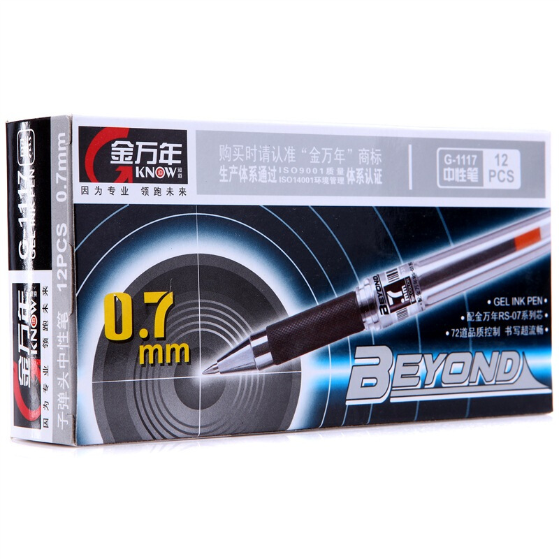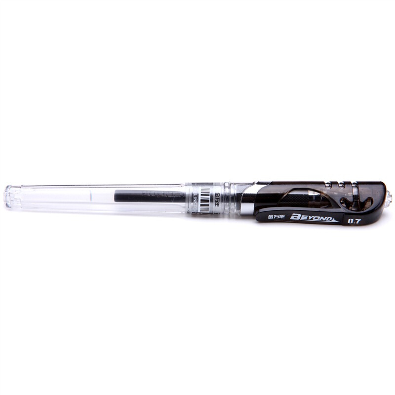 • 金万年(Genvana)G-1117 0.7mm 黑色 (12支装)透明笔杆子弹头中性笔 签字笔 水笔