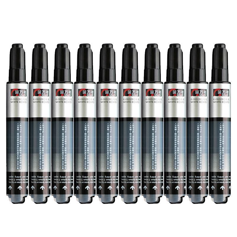 金万年(Genvana) K-0602B直液式白板笔透窗按压式大容量水性可擦白板笔补充液 10支 黑色按压式