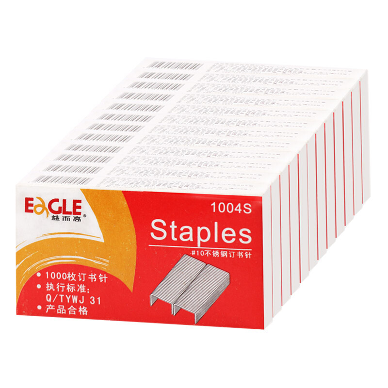 • 益而高(EaGLE)10#通用型订书针 高强度书#24/6钉厚层高穿透办公文具 1004S #10不锈钢一盒1000钉 12盒装