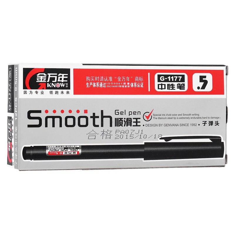 • 金万年(Genvana)G-1177 0.5mm黑色(12支装)磨砂笔杆子弹头中性笔 签字笔 水笔