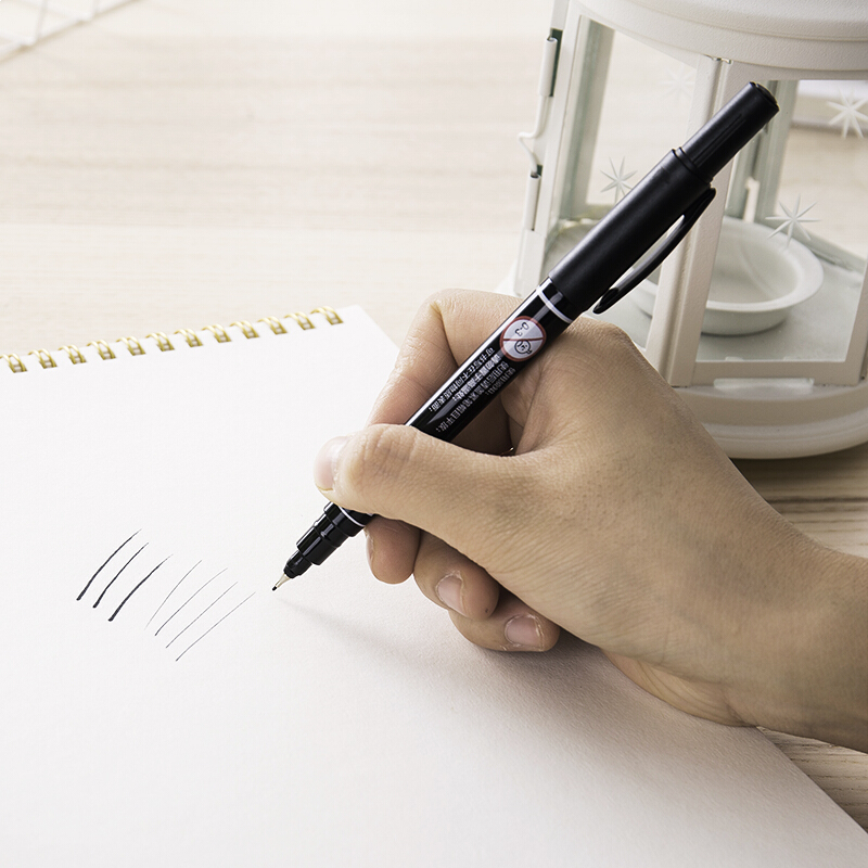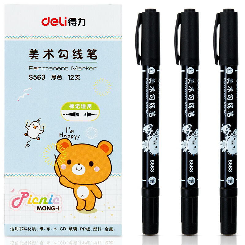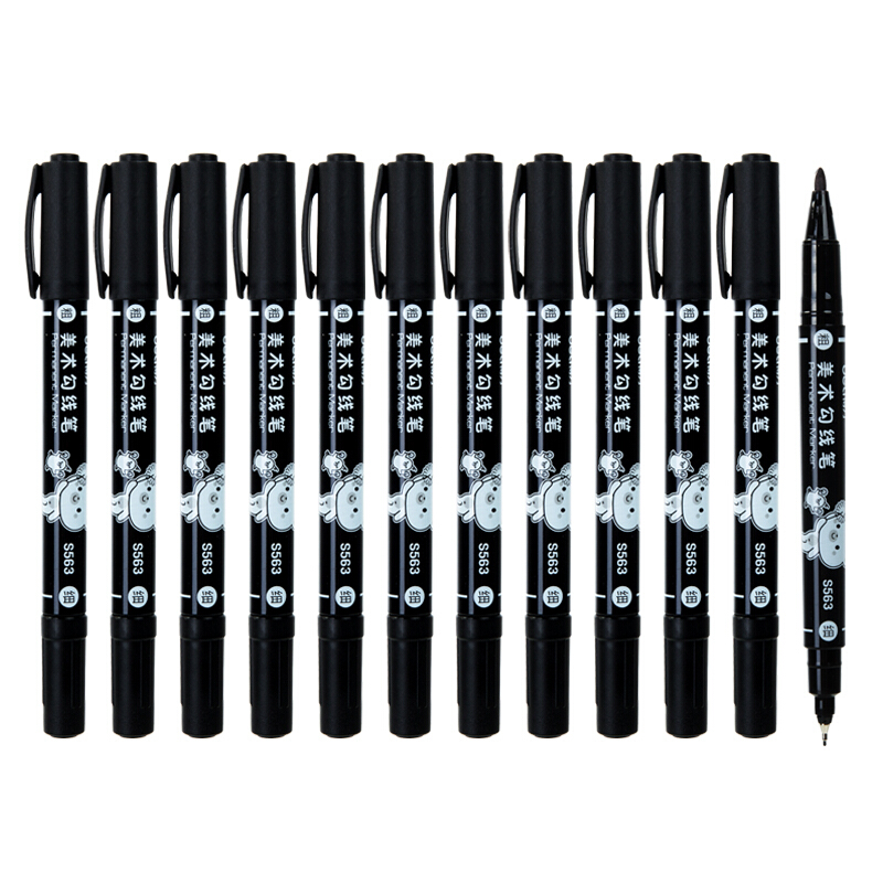 得力(deli)黑色双头记号笔美术绘画勾线笔 12支/盒
