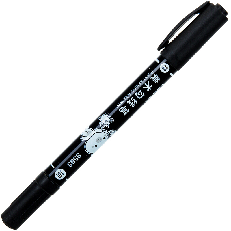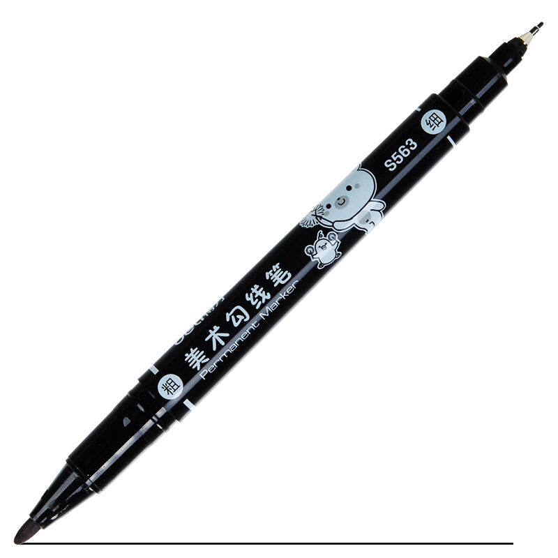 得力S563 黑色双头记号笔 12支/盒