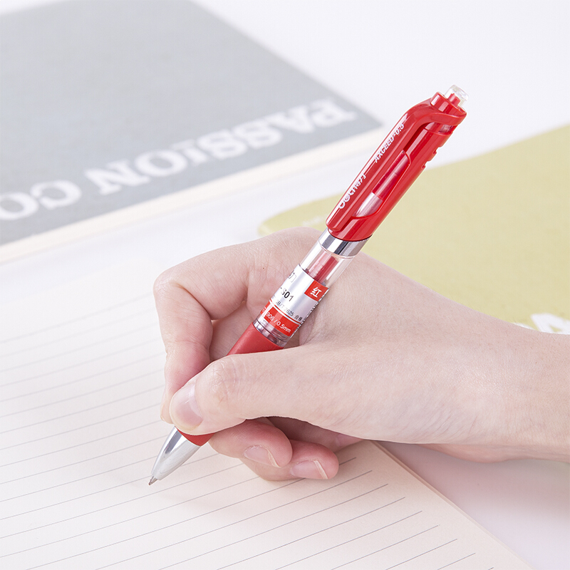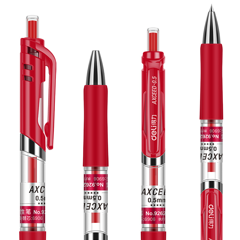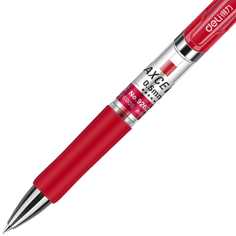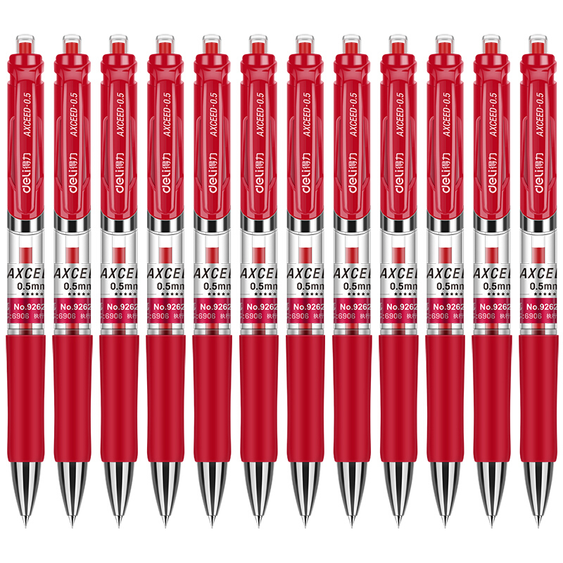 得力92622 按动红色中性笔0.5mm 12支/盒