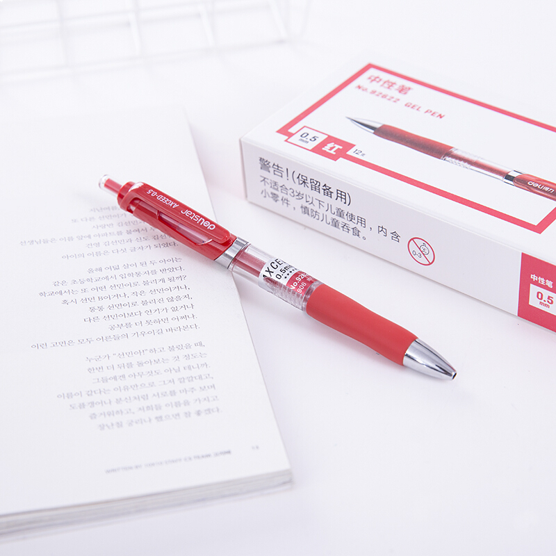 • 得力92622 按动红色中性笔0.5mm 12支/盒
