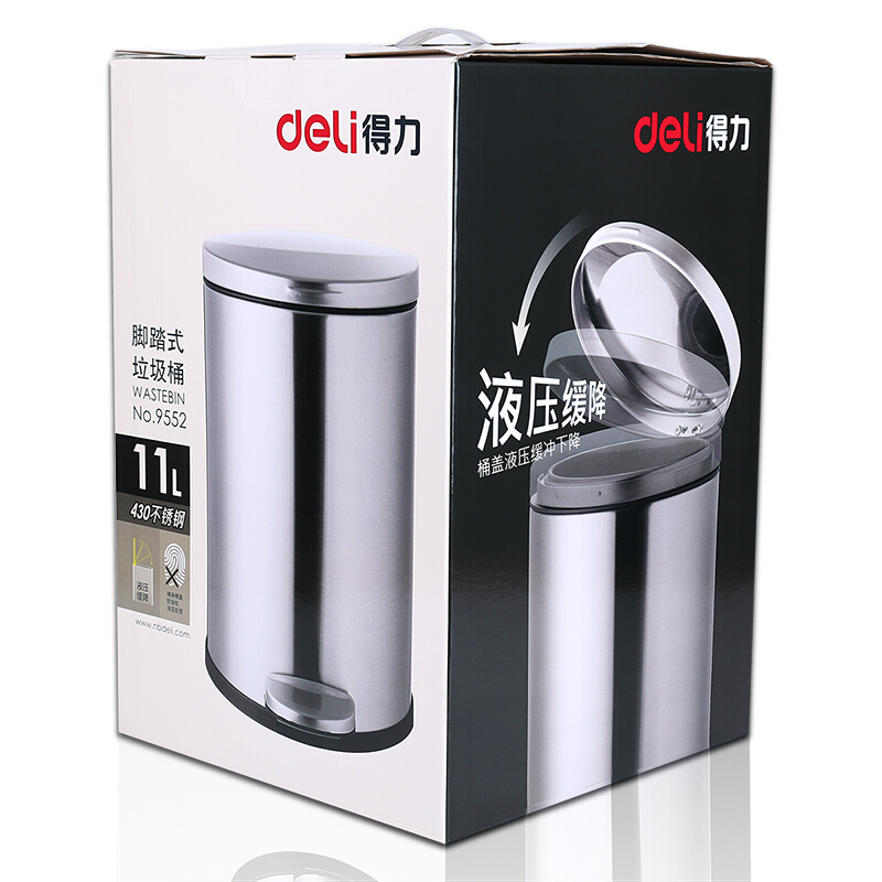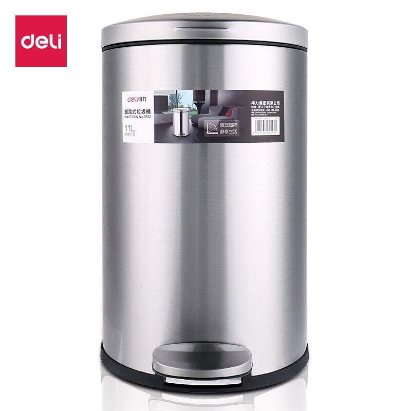 得力(deli)11L时尚脚踏不锈钢垃圾桶 低噪防臭液压缓降卫生桶