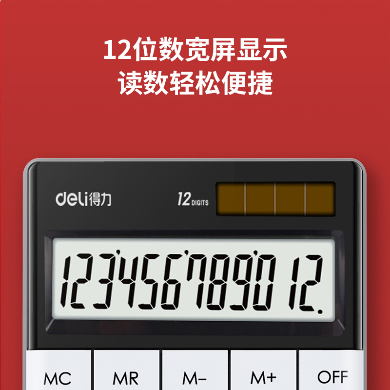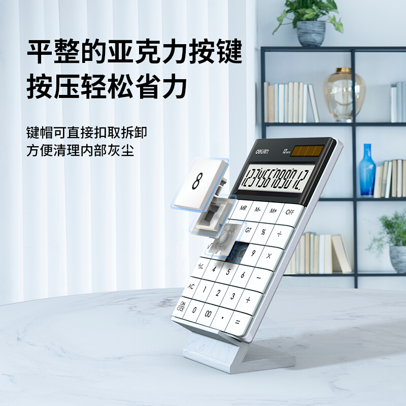 得力(deli)双电源时尚计算器 轻薄机身平板按键桌面计算机 办公用品 白色1589