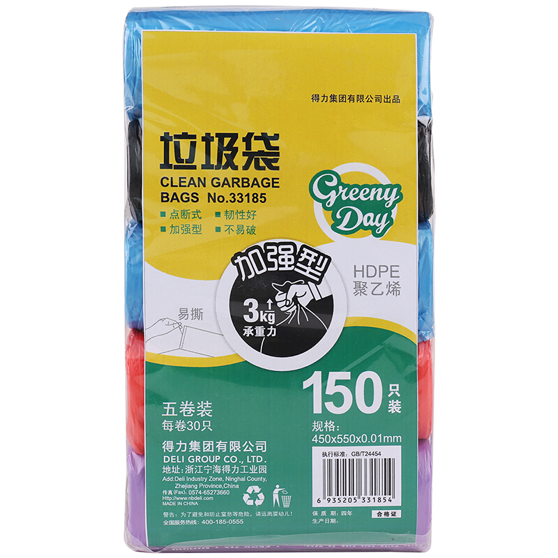 得力(deli)33185垃圾袋彩色易分类加厚型垃圾袋5卷特惠装150只