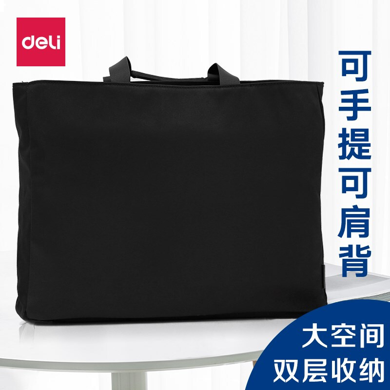 得力便携公文包大容量商务会议包电脑包 高档手提拉链袋文件资料包 黑色 5573