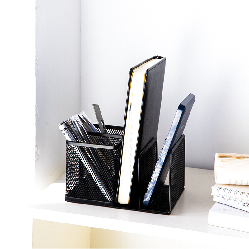 得书立+笔筒金属网格创意桌面收纳 黑色8917