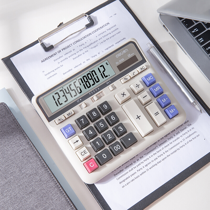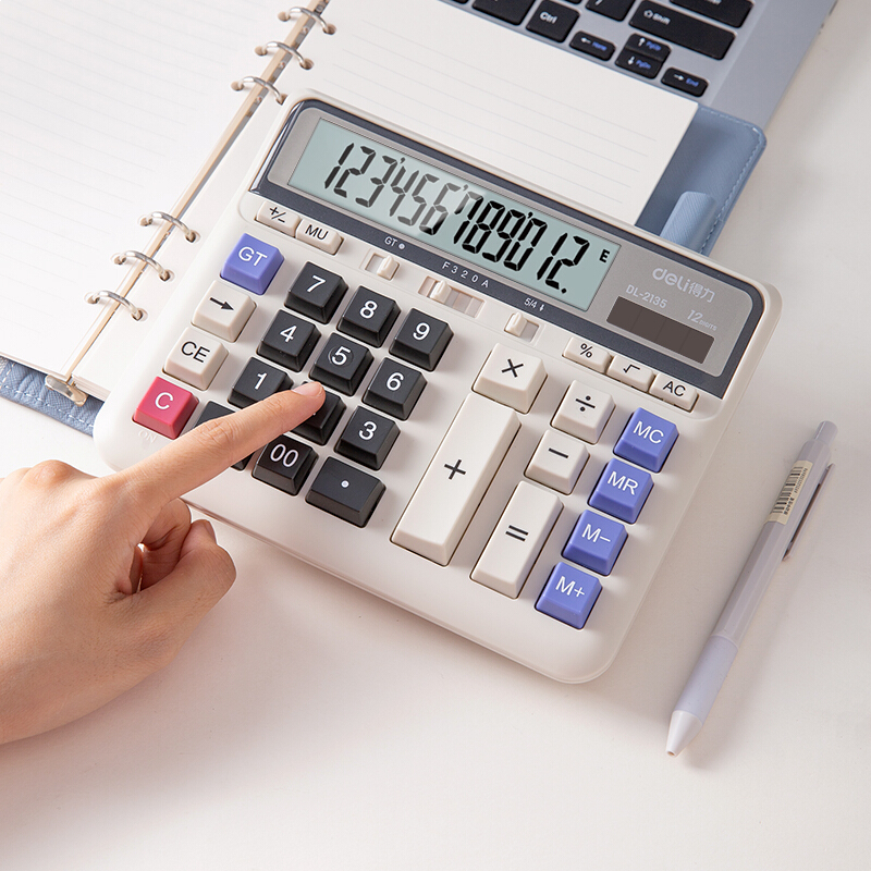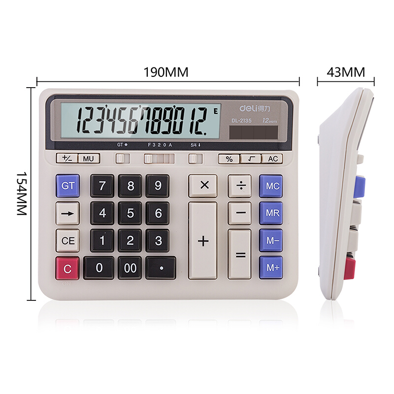 得力双电源电脑按键计算器 12位大屏横式计算机 财务及银行人员适用 办公文具用品 白色2135
