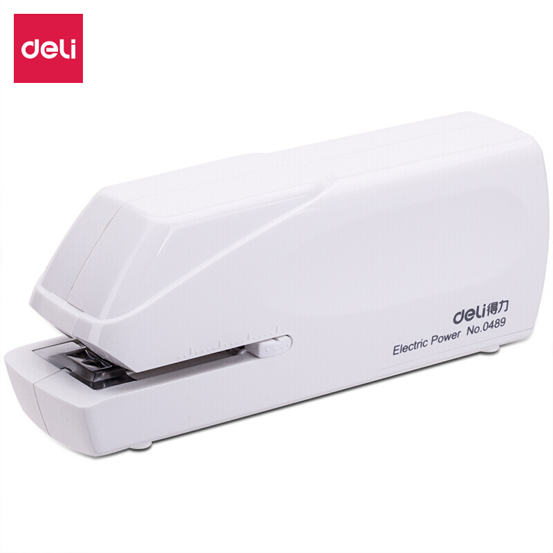 得力(deli)双电源电动订书机 电子自动装订订书器 适配24/6或26/6订书钉 办公用品 白色0489