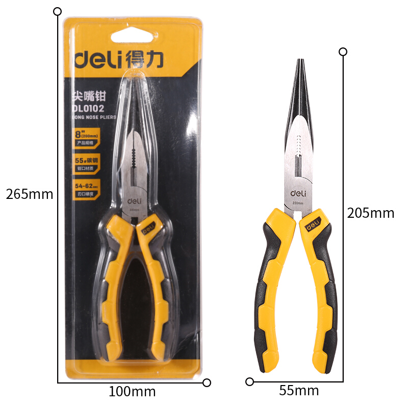 得力工具尖嘴钳子6寸8寸多功能电工钳子五金工具尖口钳尖咀钳尖头钳 高碳钢尖嘴钳8英寸 DL0102