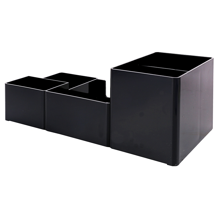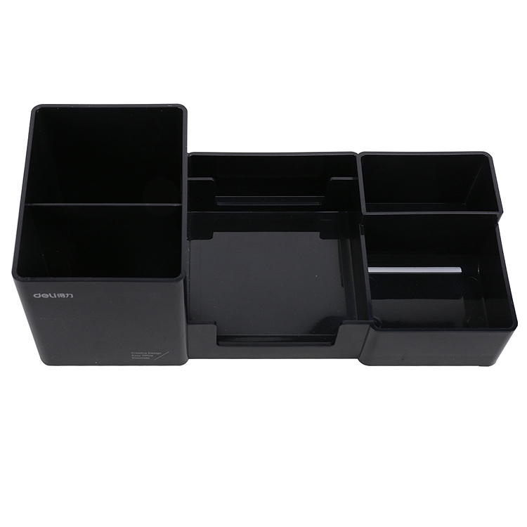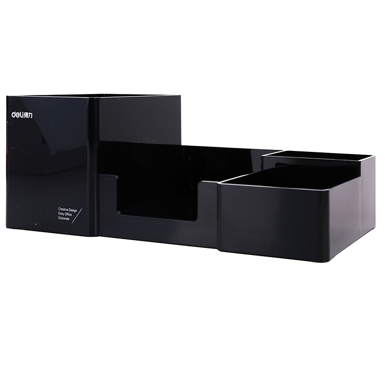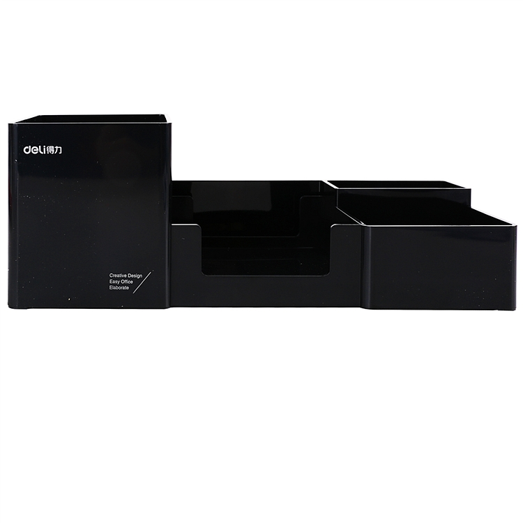得力多功能笔筒桌面收纳盒多隔收纳 9118黑色塑料多功能收纳盒