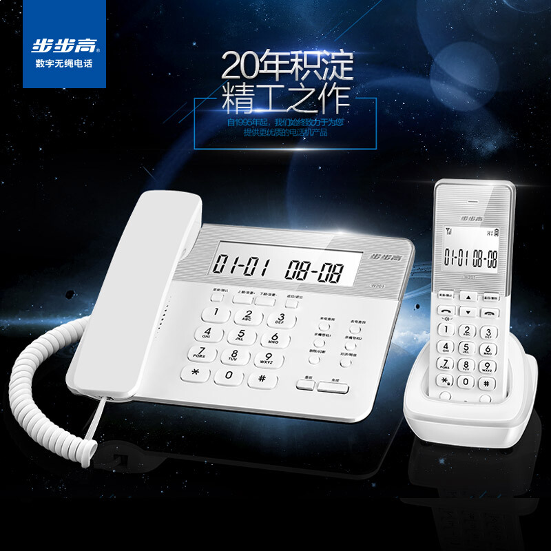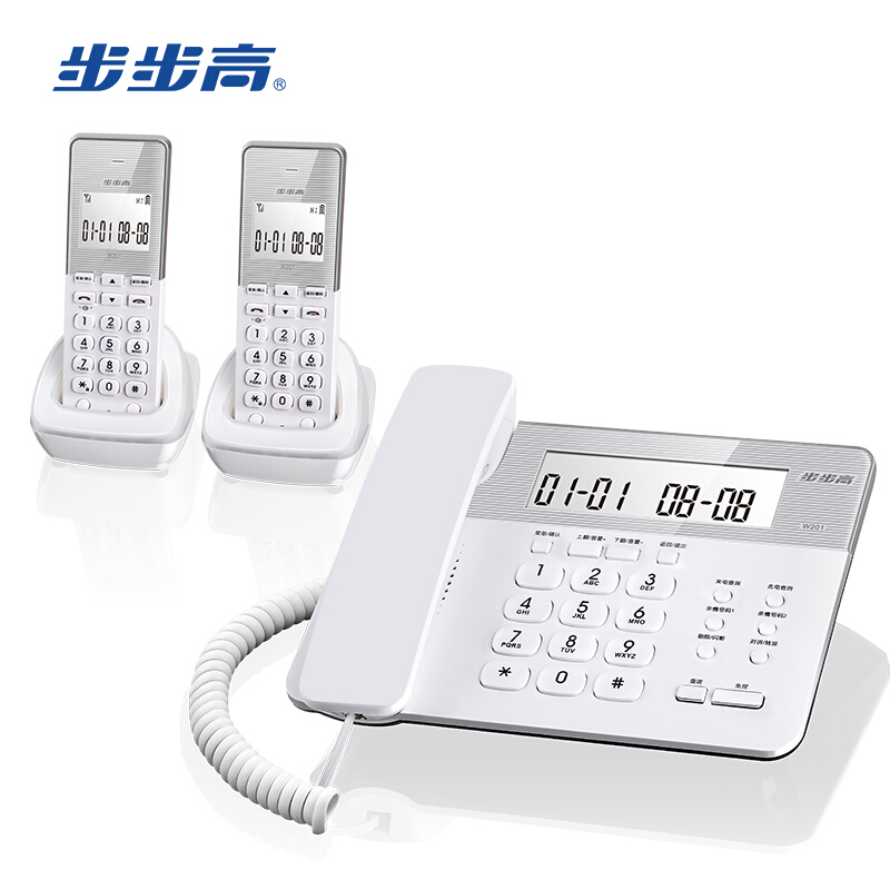 • 步步高(BBK)W201 无绳电话机 无线座机 子母机 办公家用 白色背光大屏 一键拨号 晶莹白 一拖二