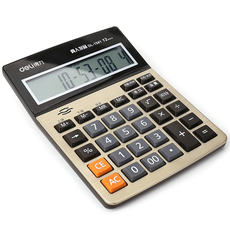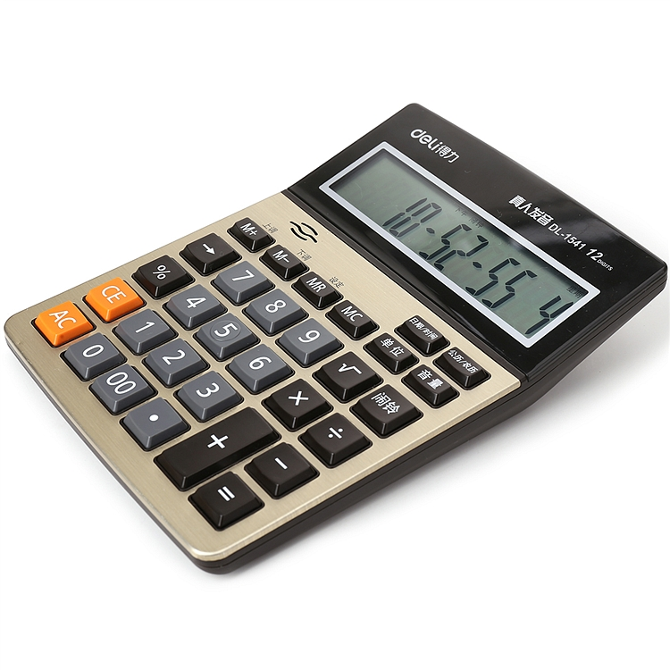 得力(deli)12位大屏幕语音计算器 闹钟日历功能语音计算机 办公用品 金色1541A