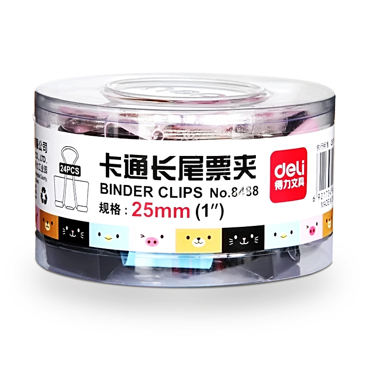 得力彩色卡通长尾票夹19MM 25MM 桶装长尾夹票夹燕尾夹 票据夹 25mm(8488)