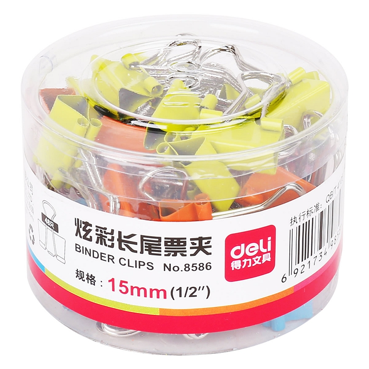 得力 8586 炫彩系列长尾票夹筒装 15mm(3/5) (单位:筒) 混色