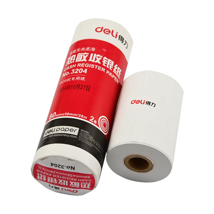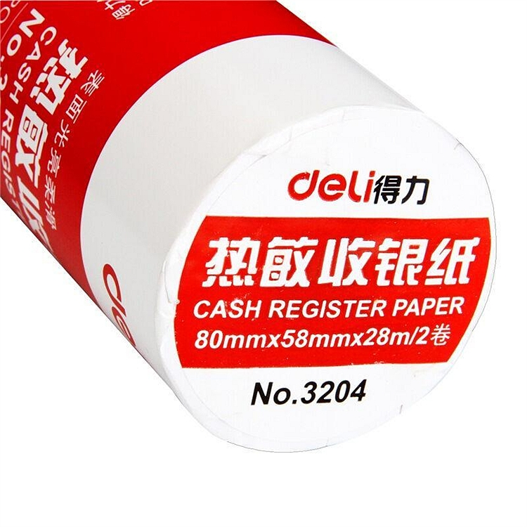 得力(deli)80mm*58mm热敏收银纸/美团外卖超市收银小票纸/餐饮排队叫号打印纸28米/卷 2卷装 3204
