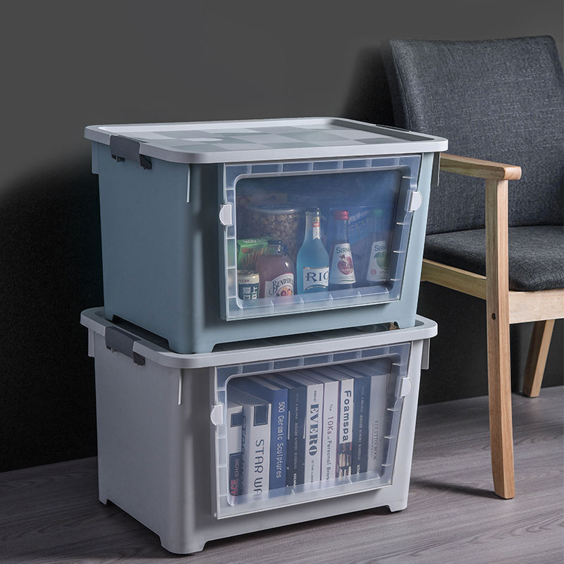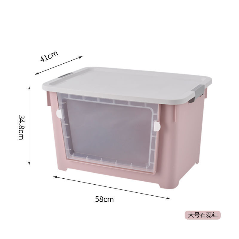 • 塑料前开式储物家用收纳盒子p2 北欧粉-大号100# 前门式加厚款