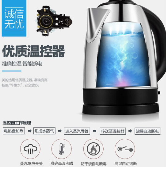 • 美的(Midea)电热水壶 全钢优质温控电热水壶电水壶(1.7L) 金属色MK-SJ1702(WSJ1702b)