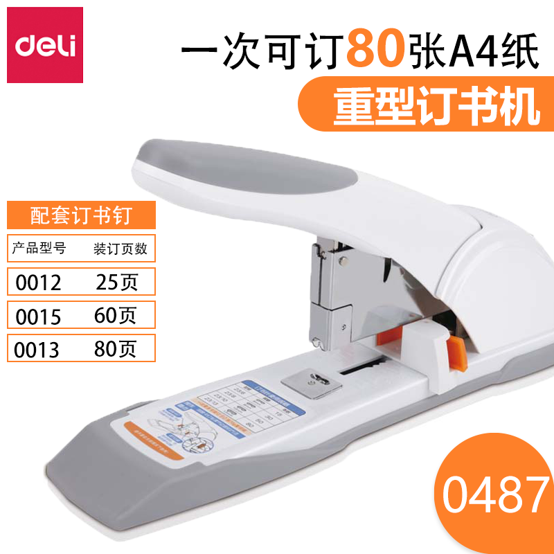 得力订书机加厚重型订书器大订书机厚层大型长臂大码重型订书机颜色随机 0487 可订80页 (23/6-23/13)