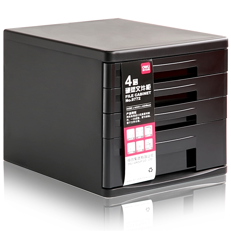 • 得力 9772 四层硬塑桌面文件柜 265x344x249mm (单位:只) 黑