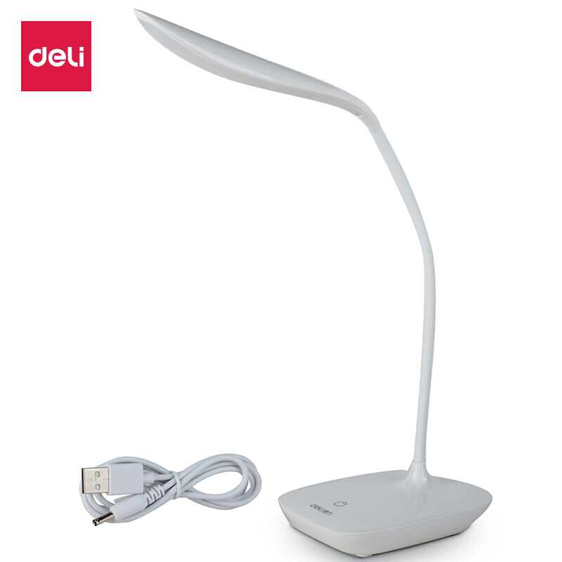 得力(deli)LED可充电触控台灯 无极调光学习办公桌面台灯 白色
