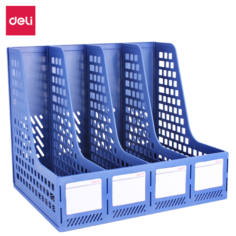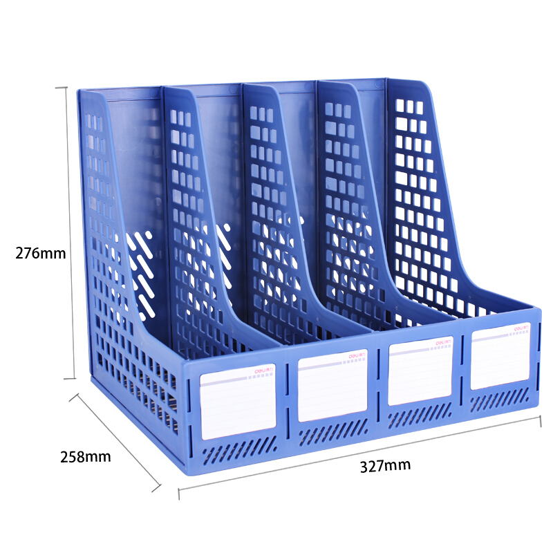 得力(deli)四联镂空桌面文件框 四栏带标签稳固文件栏/文件筐/资料框 办公用品 蓝色27888