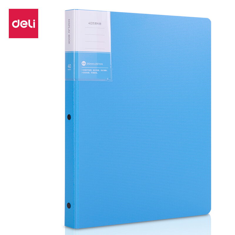 得力(deli)A4/40页加厚高档款资料册 彩色试卷文件孕检资料收纳册 活页插袋文件夹 5152蓝