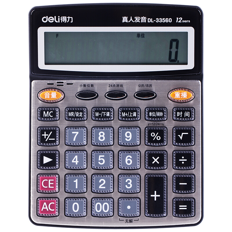 得力33560语音型计算器会计财务专用12位大屏大按键计算器商务型 计算器