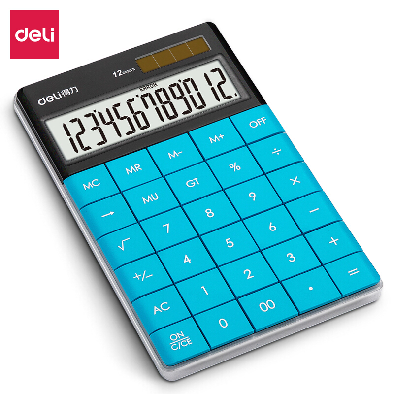 得力(deli)双电源时尚计算器 轻薄机身平板按键桌面计算机 办公用品 蓝色