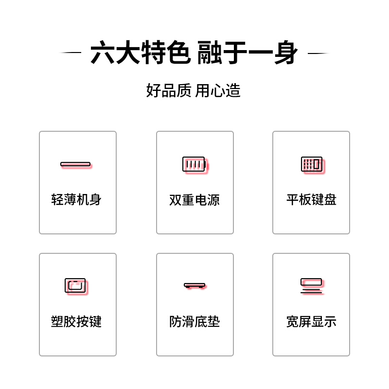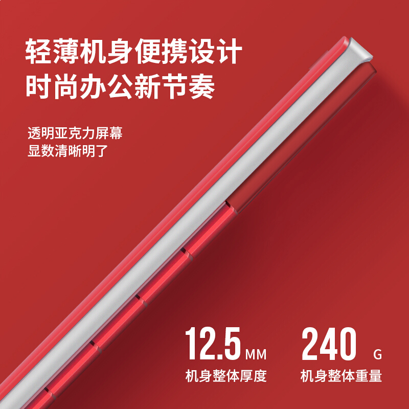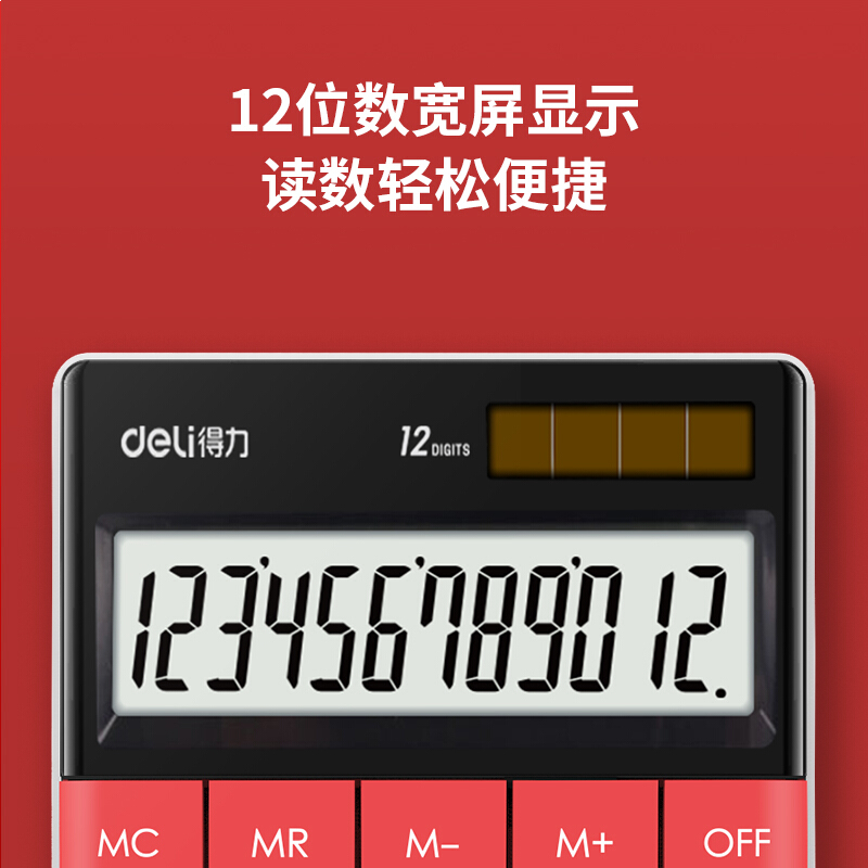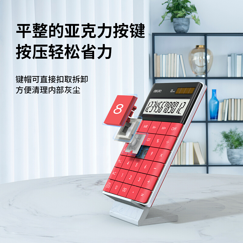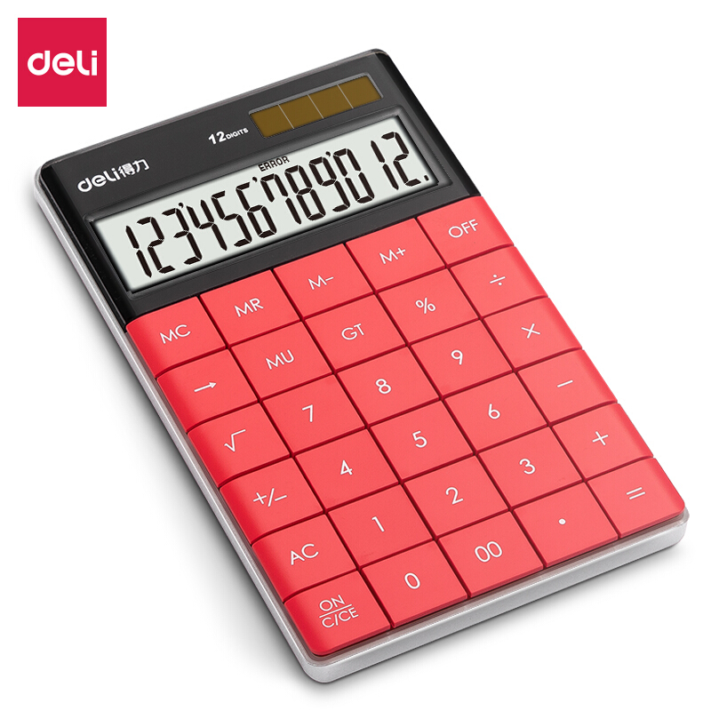 得力(deli)双电源时尚计算器 轻薄机身平板按键桌面计算机 办公用品 红色
