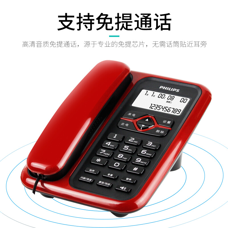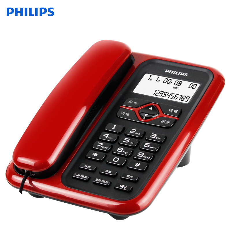 飞利浦CORD020 电话机座机 固定电话 办公家用 免电池 插线即用 红色