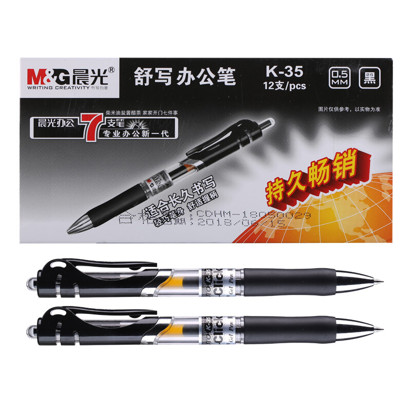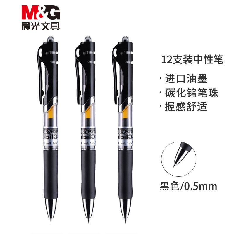 • 晨光(M&G)文具K35/0.5mm黑色中性笔 按动笔 经典子弹头签字笔 办公用水笔 12支/盒