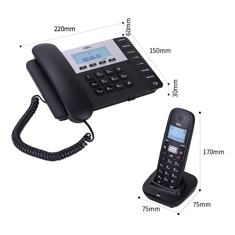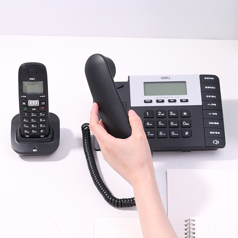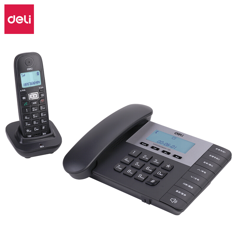 得力(deli)电话机座机 固定电话 办公家用 子母机 停电可用 子机内部通话 33886黑