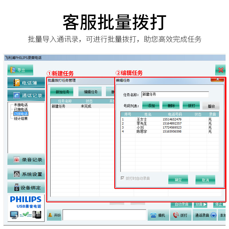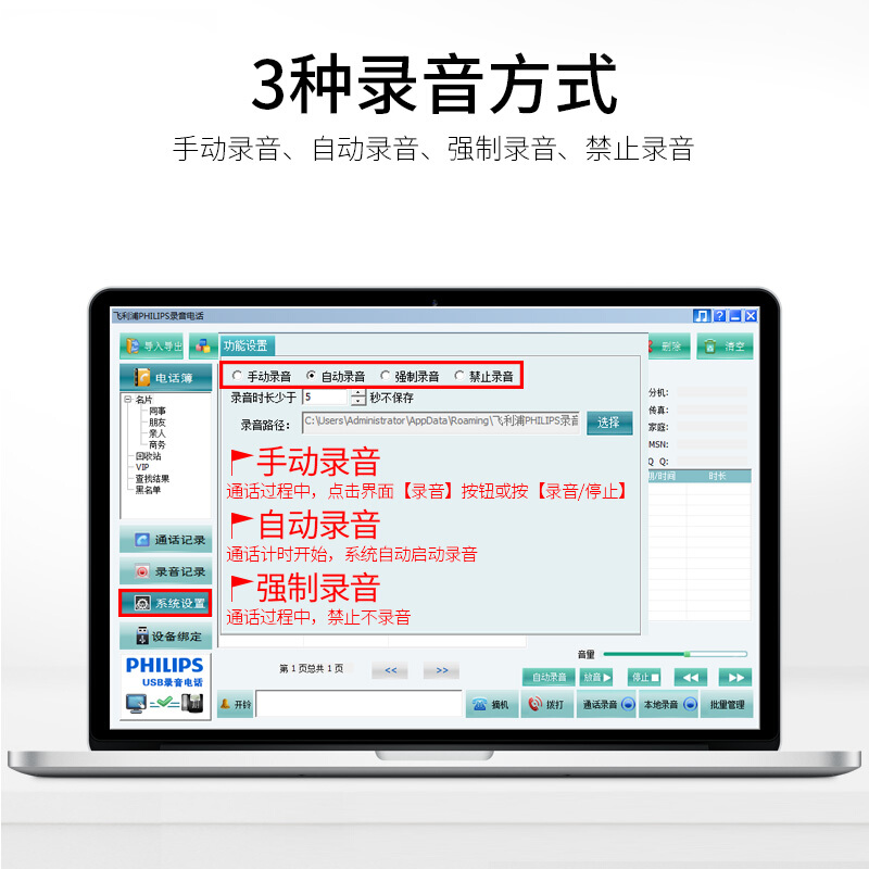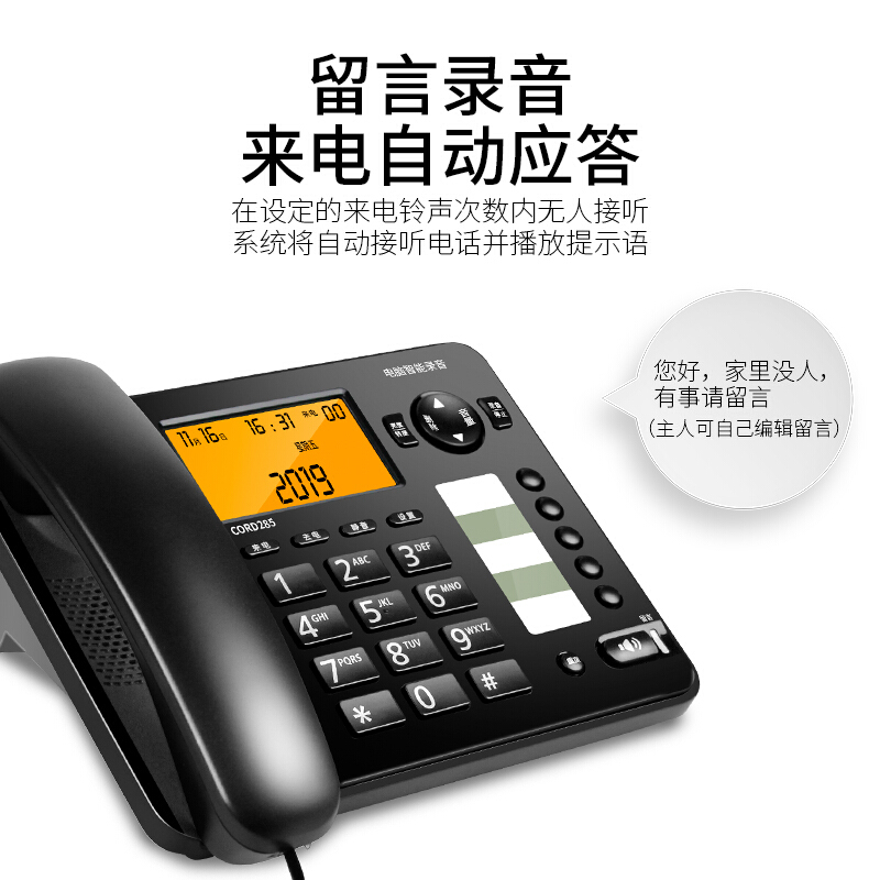 飞利浦(PHILIPS)CORD285 录音电话机 固定座机 办公家用 留言答录 连接电脑软件 海量存储 远距离免提 黑色