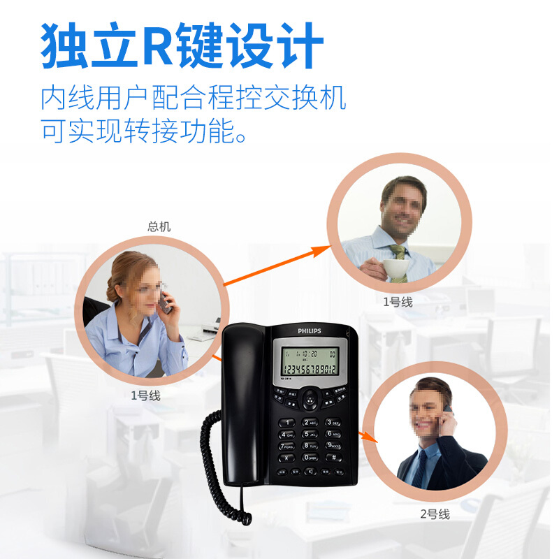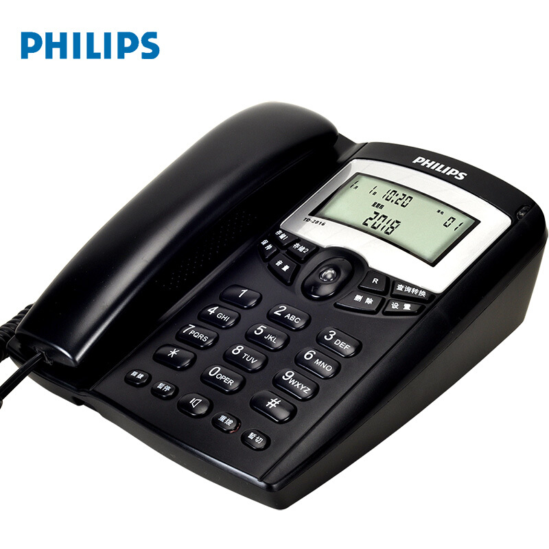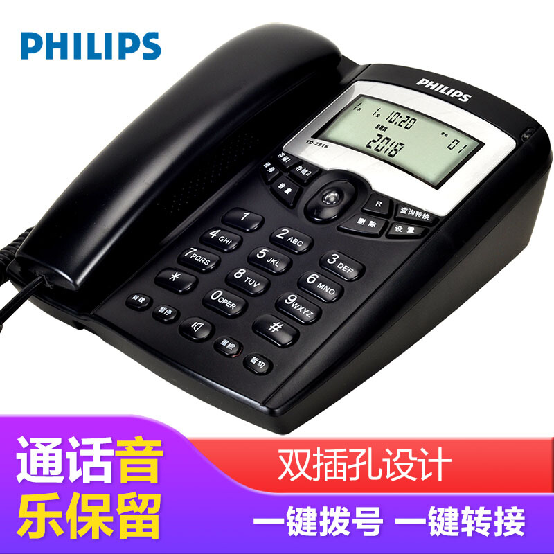 飞利浦(PHILIPS)电话机座机 固定电话 办公家用 免电池 来电显示 双插孔 TD-2816 (蓝色)